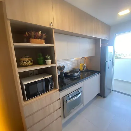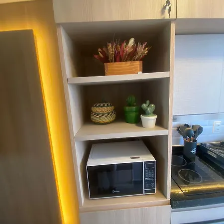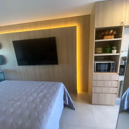 A mini-kitchen with a microwave and a fridge ensures an enjoyable dining experience. Guararapes airport is at a distance of 50 km from the 29 m^2 Flat Vip Vista Mar By La Playa Apartment.